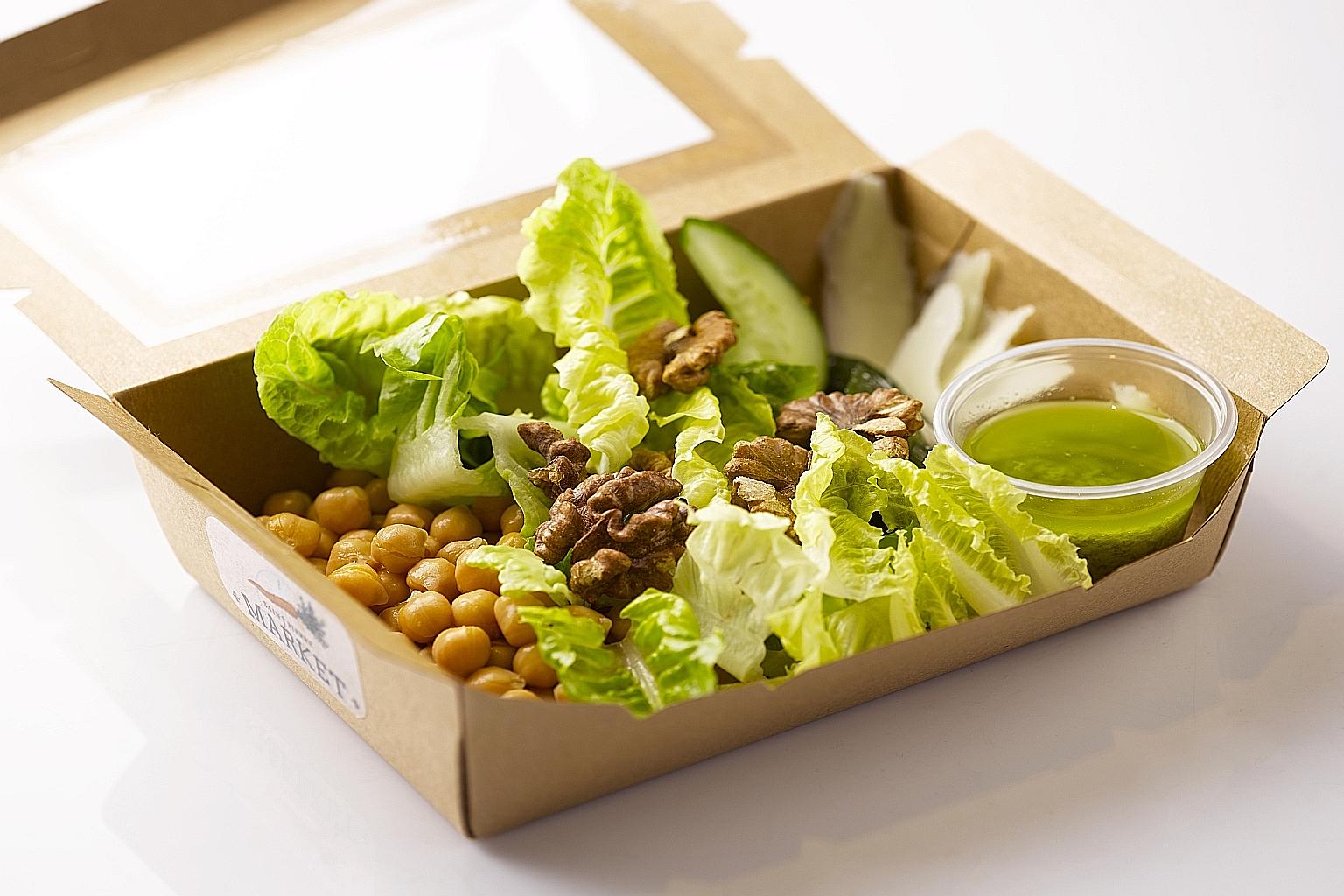 Healthier Christmas offerings on the market include Bud of Joy's organic log cake, Saint Pierre Market's Chef's Favourite salad (above), The Bakery Depot's flourless chocolate log cake and Antoinette's La Foret savoury sandwich cake.