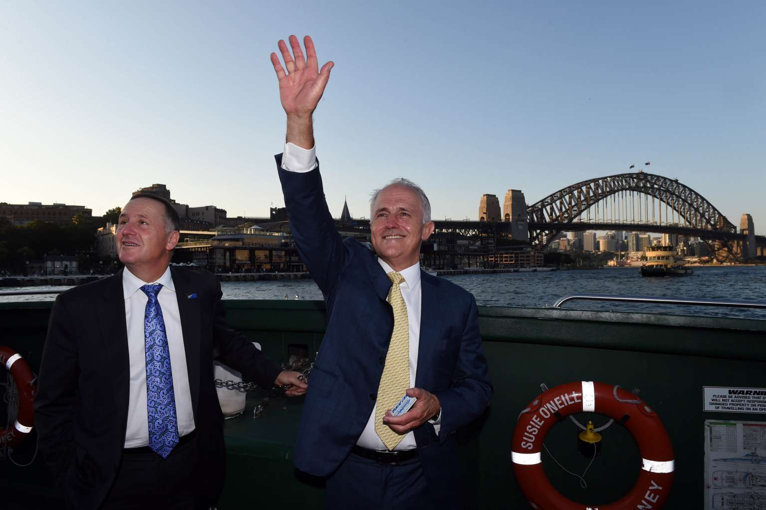 Australian Prime Minister Malcolm Turnbull (right) and New Zealand counterpart John Key in front of the Sydney Opera House on Feb 19, 2016.
