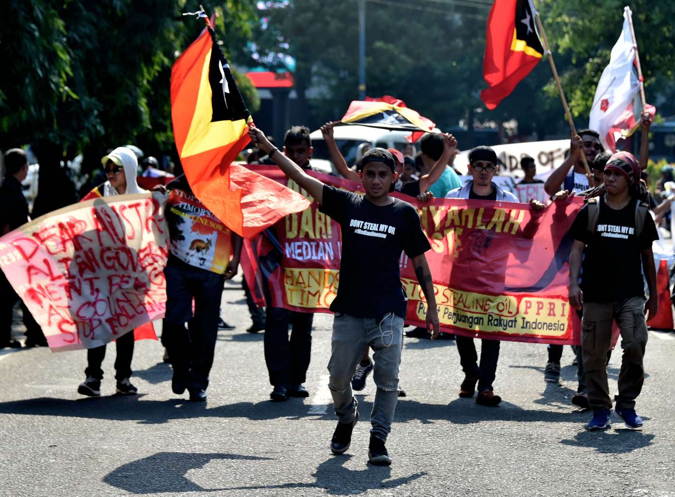 East Timorese students living in Indonesia attending a rally in front of the Australian embassy in Jakarta on March 24, 2016.