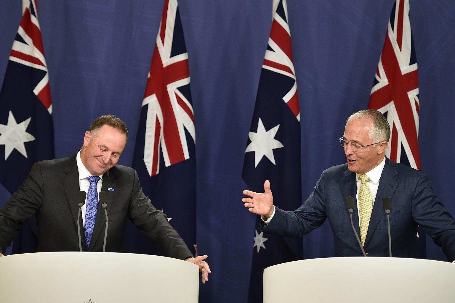Australia's Prime Minister Malcolm Turnbull (right) and his New Zealand counterpart John Key hold a joint press conference in Sydney on Feb 19, 2016.