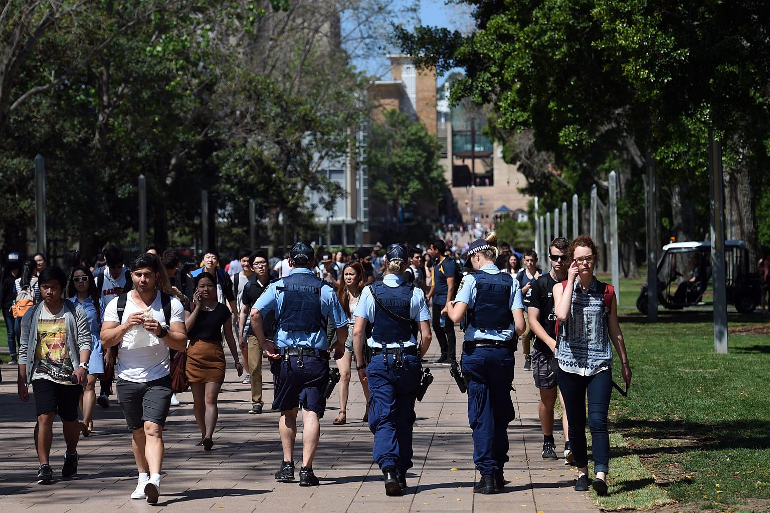 Australian Police officers patrol the University of New South Wales (UNSW) in Sydney, Australia, on Oct 12, 2015.