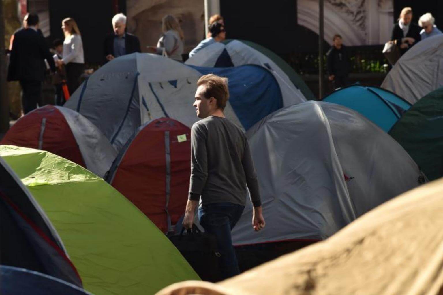 SYDNEY (AFP) - A homeless tent city has sprung up outside Australia's central bank in the heart of Sydney, sparking a war of words over who should deal with it.