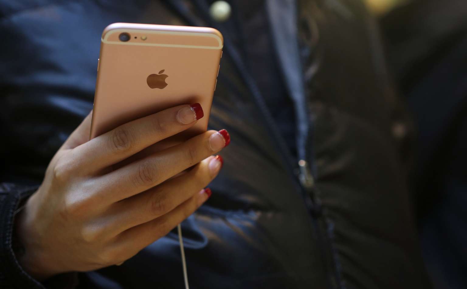 A customer holds an Apple Inc. iPhone 6S rose gold colored smartphone device at the Apple Inc. store at Covent Garden in London, U.K., on Friday, Sept. 25, 2015.