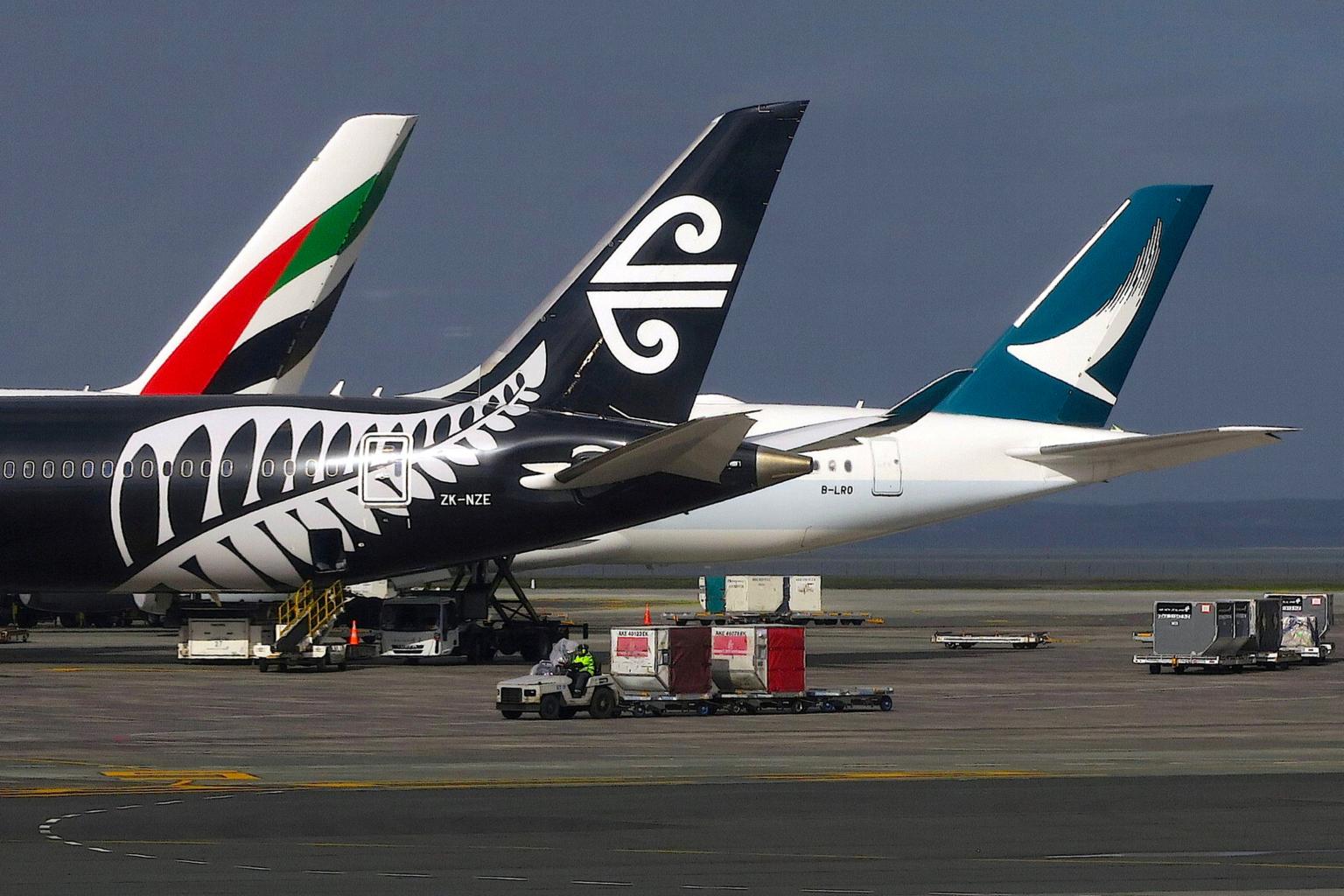 Air New Zealand and Cathay Pacific planes on the tarmac at Auckland Airport on June 25, 2017.