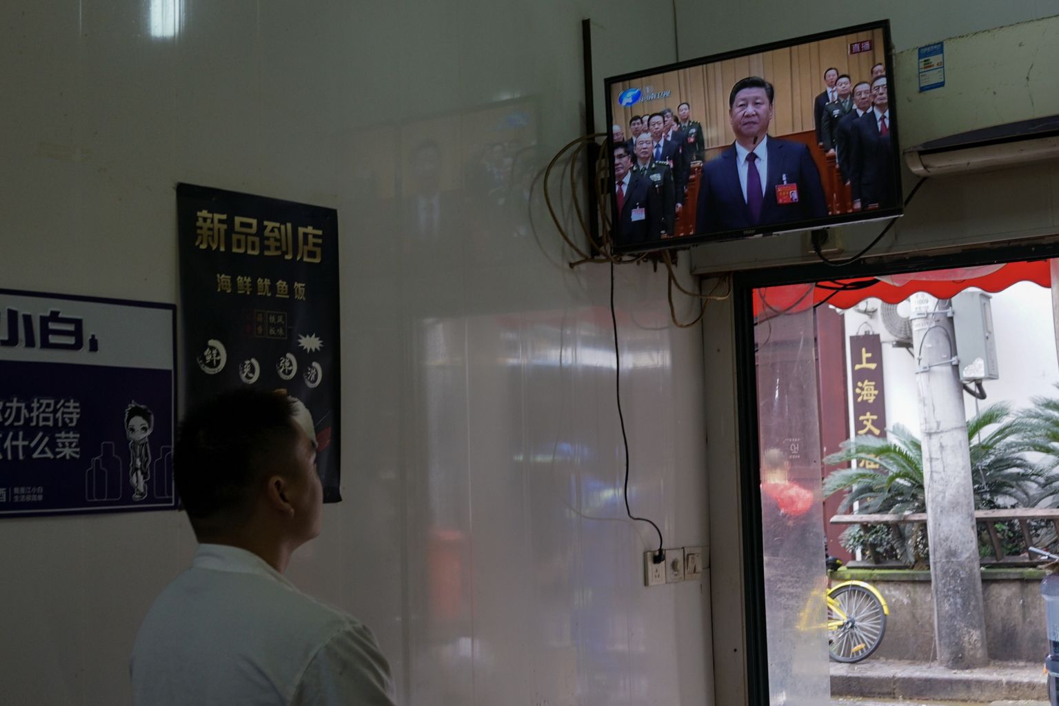 A man watching the opening of the 19th Communist Party Congress on a television in Shanghai, on Oct 18, 2017. Real estate has been a key growth driver for China, and is the main source of wealth for most Chinese citizens.
