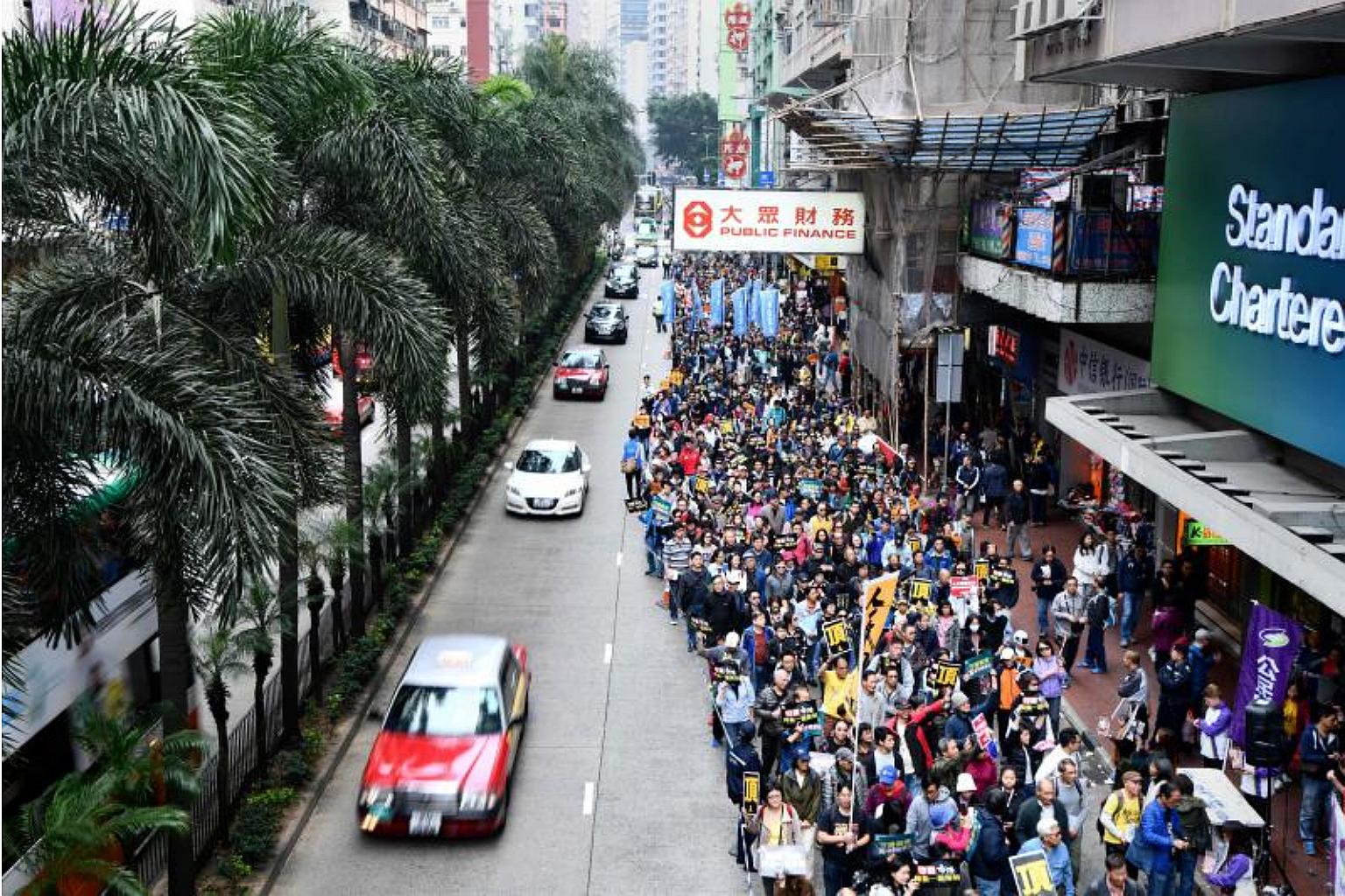 Campaigner Joshua Wong, who joined thousands of protesters at the march Monday, said suppression by China's Communist Party government had worsened in 2017.
