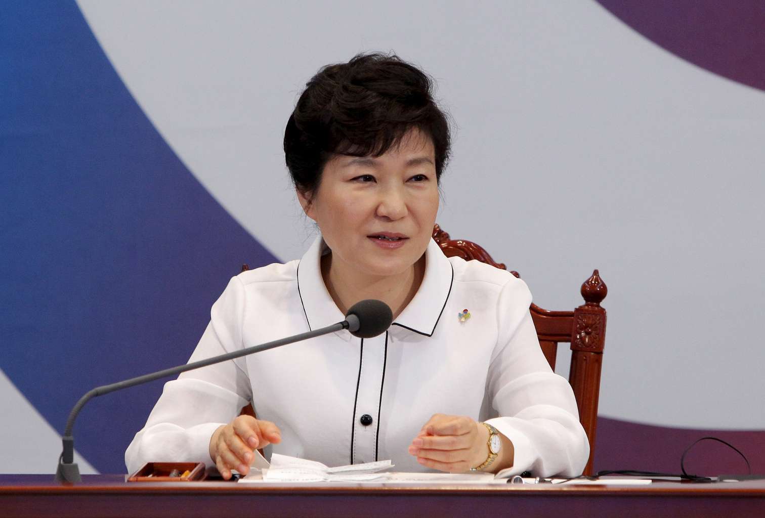 South Korean President Park Geun-hye speaks during a meeting with g global health experts at the presidential Blue House in Seoul, South Korea