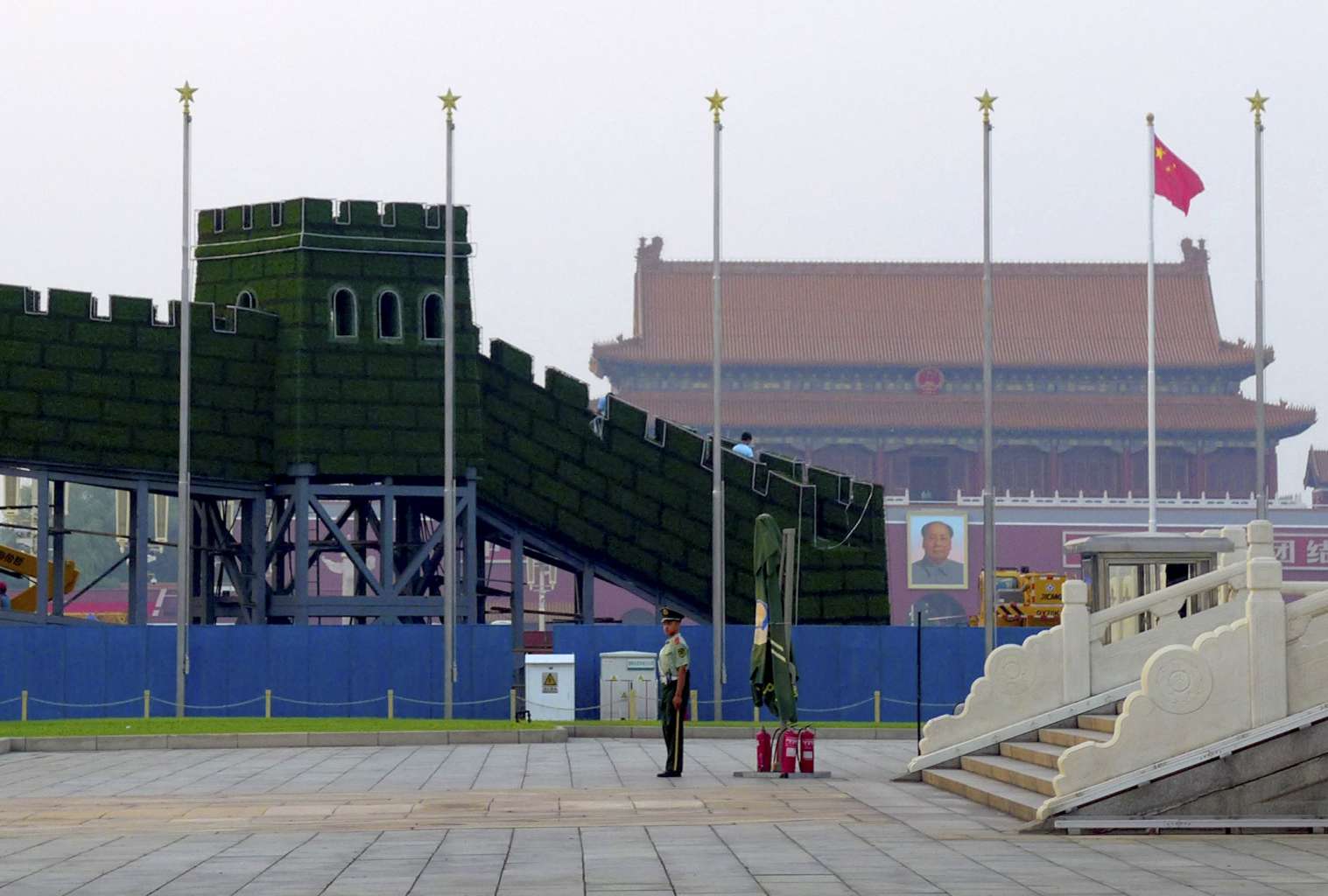 The centrepiece of the parade route is through Tiananmen Square, the symbolic heart of the Chinese state, and the Tiananmen rostrum on the north side of the plaza has been shut to tourists since the start of this month.