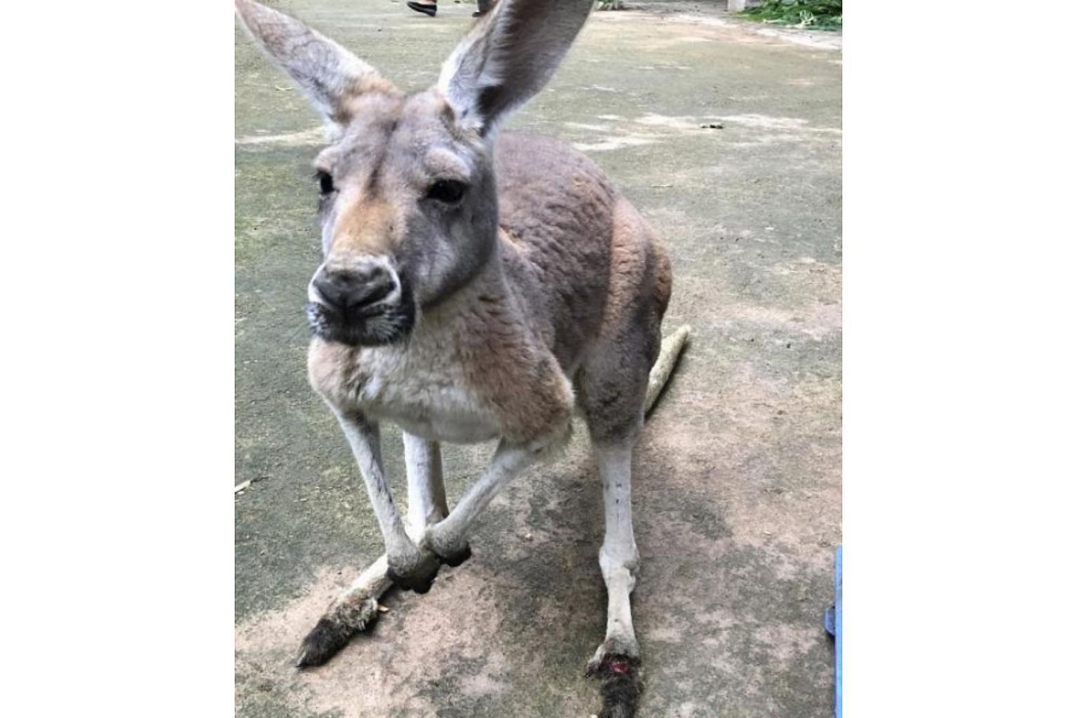 A 12-year-old female kangaroo suffered a severely injured foot when it was struck by bricks and concrete chunks at the Fuzhou Zoo in Fujian province.