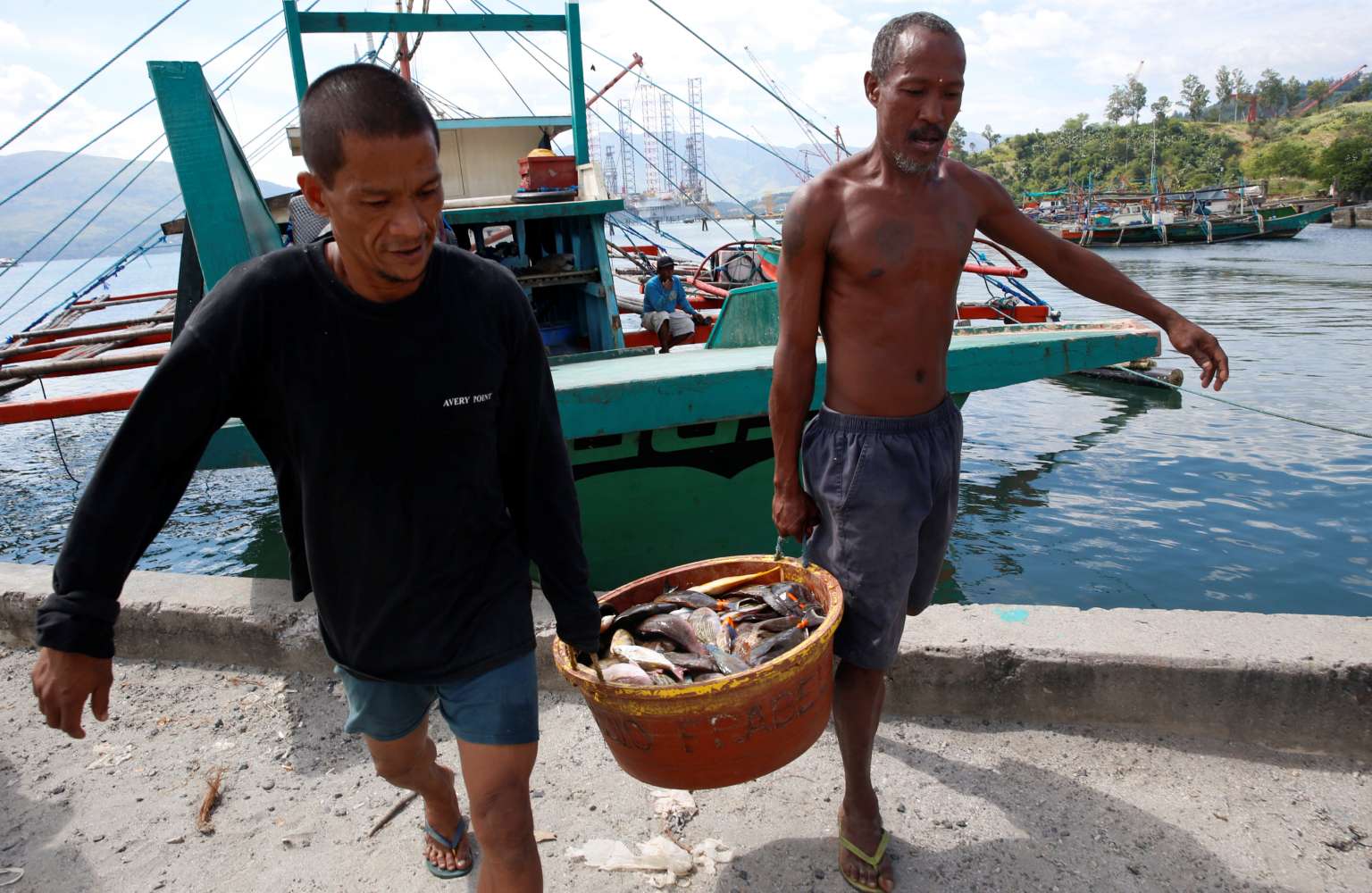 Fishermen, who has just returned from fishing in disputed Scarborough shoal, unload fish from a boat in Subic, Zambales in the Philippines on Nov 1, 2016.