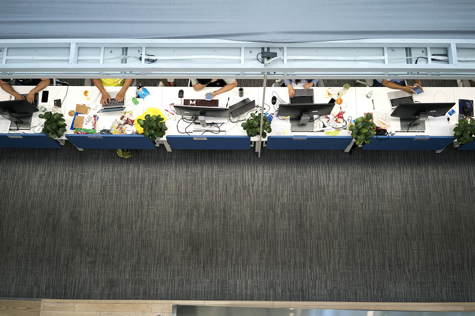 Employees work at computers inside the Beijing Byte Dance Technology Co headquarters in Beijing, China.