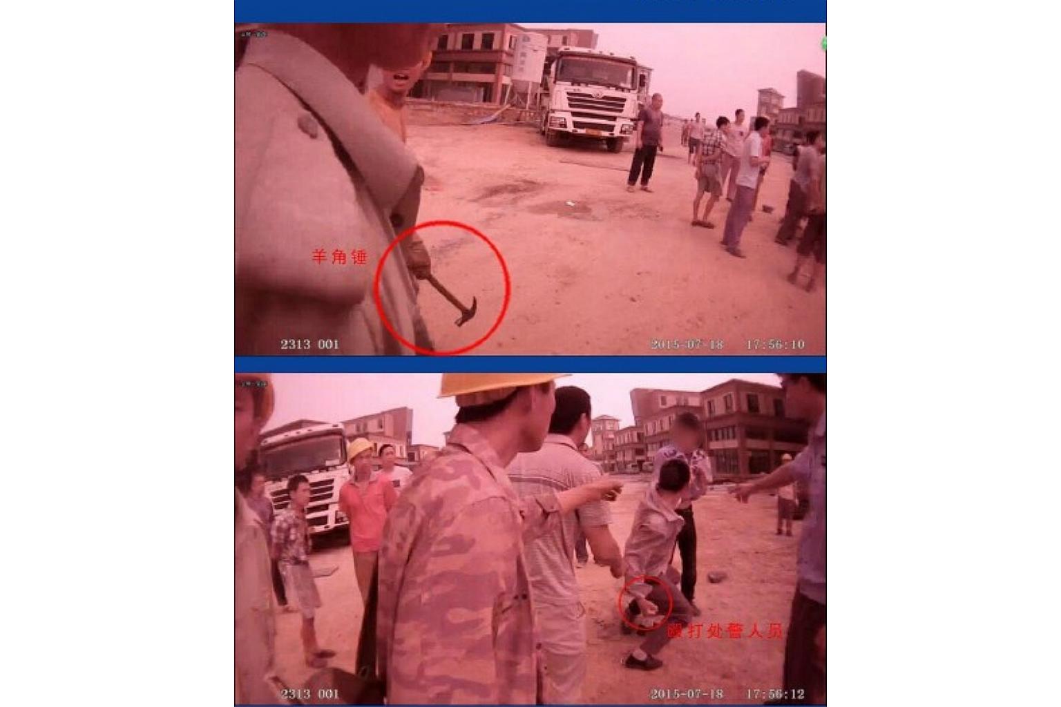 A photo released by the offical Sina Weibo account of Luoyang city's public security bureau showing some men about to attack police officers at a construction site.
