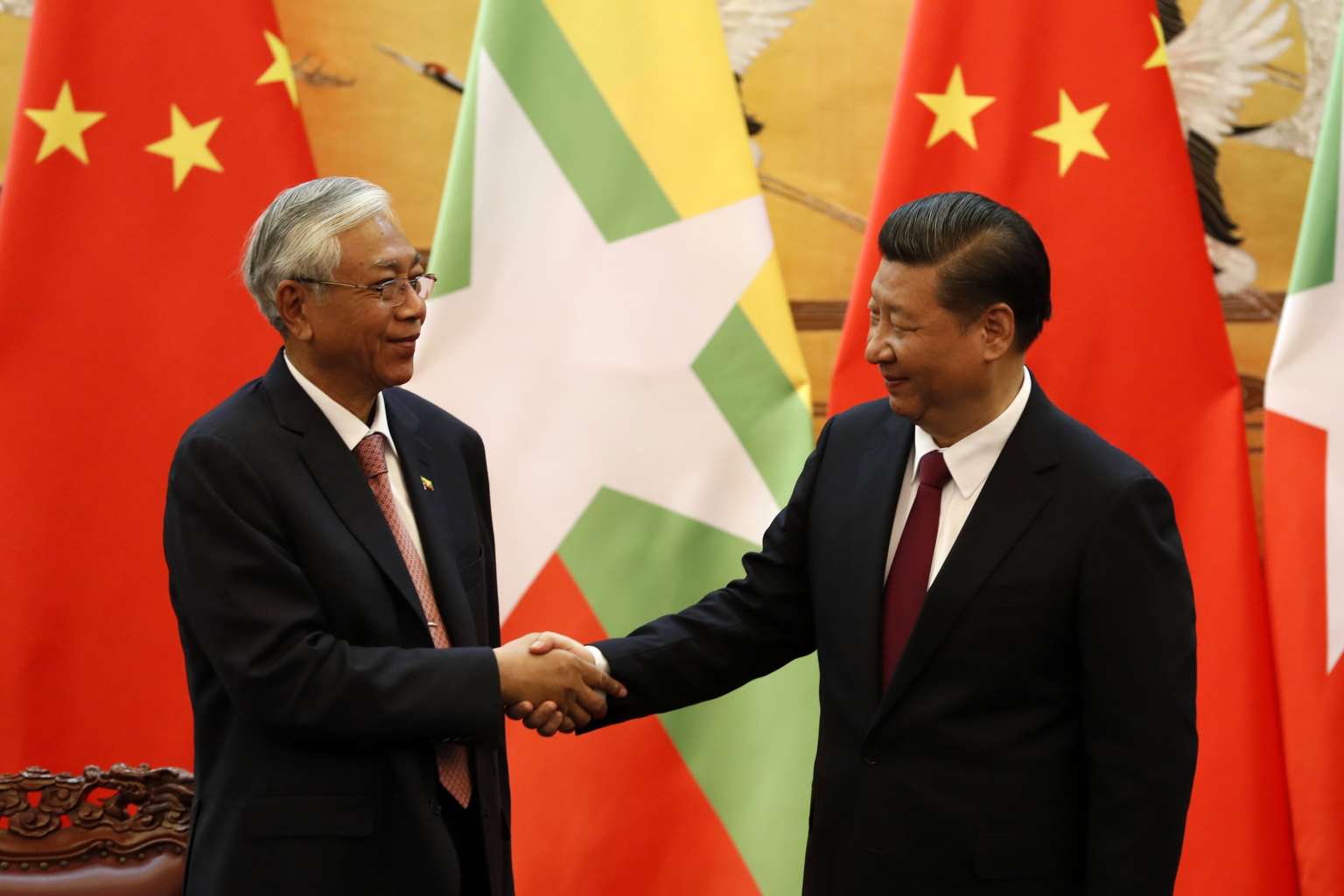 Chinese President Xi Jinping (right) with Myanmar President Htin Kyaw at a meeting in Beijing.