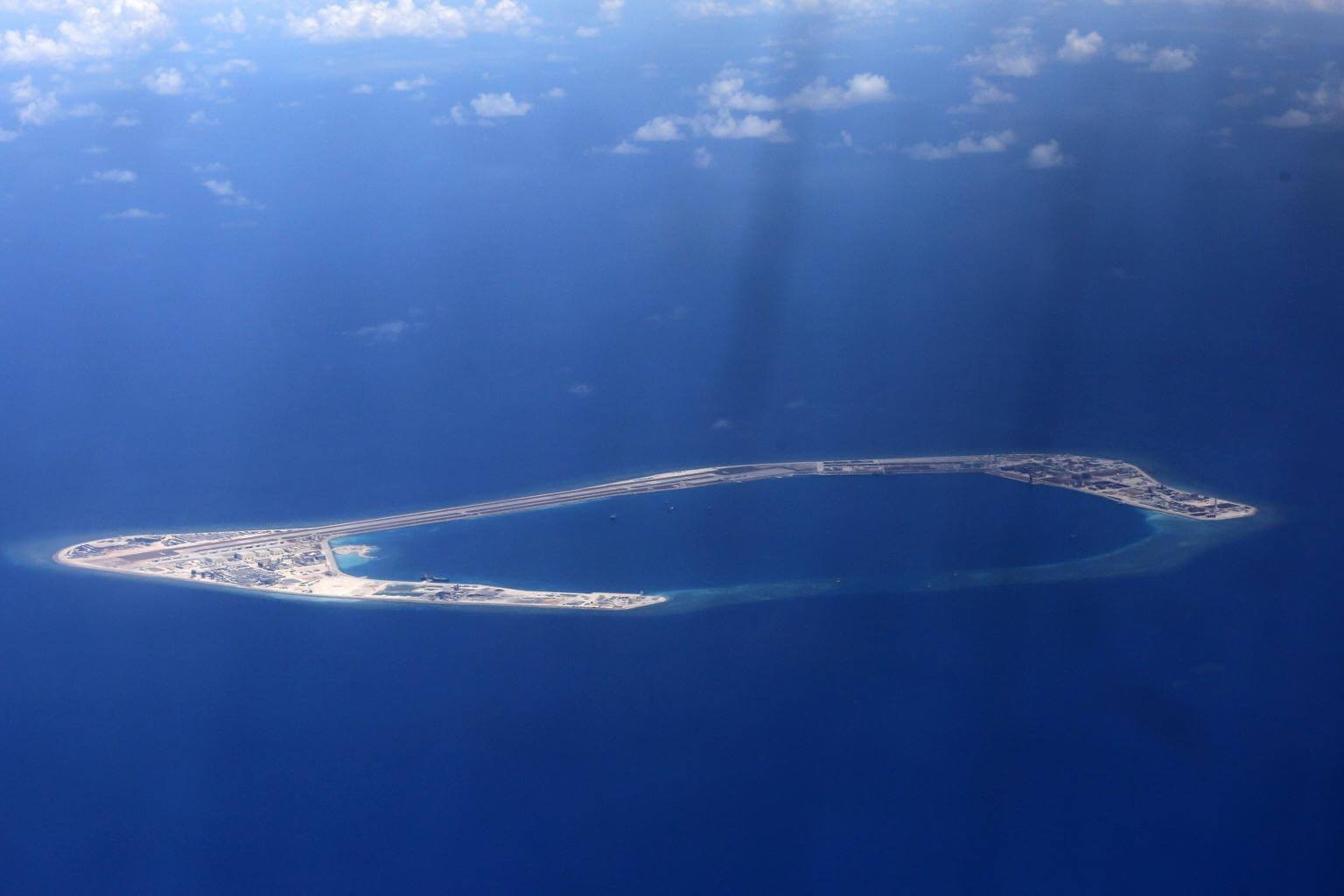 An aerial view of the Subi reef, one of several islands being claimed by China in the disputed South China Sea, on April 21, 2017.