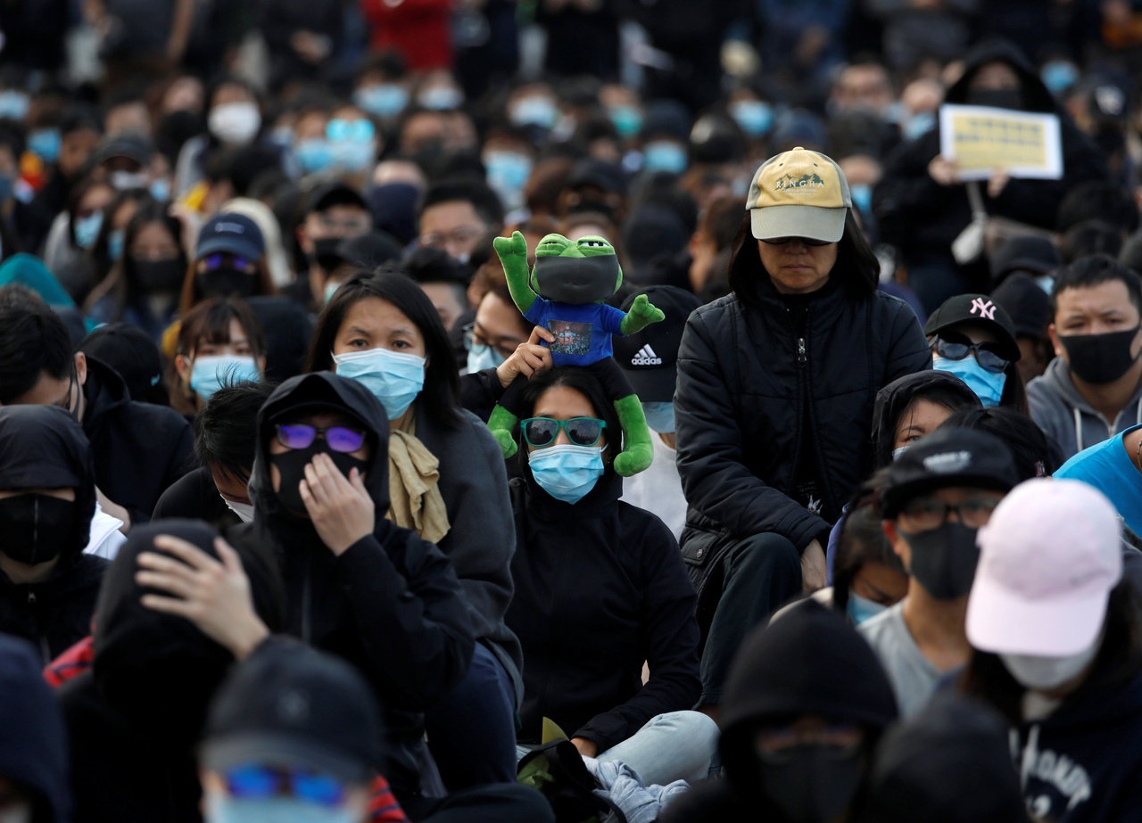Anti-government protesters demonstrate during a protest at Edinburgh Place in Hong Kong on Jan 12, 2020.