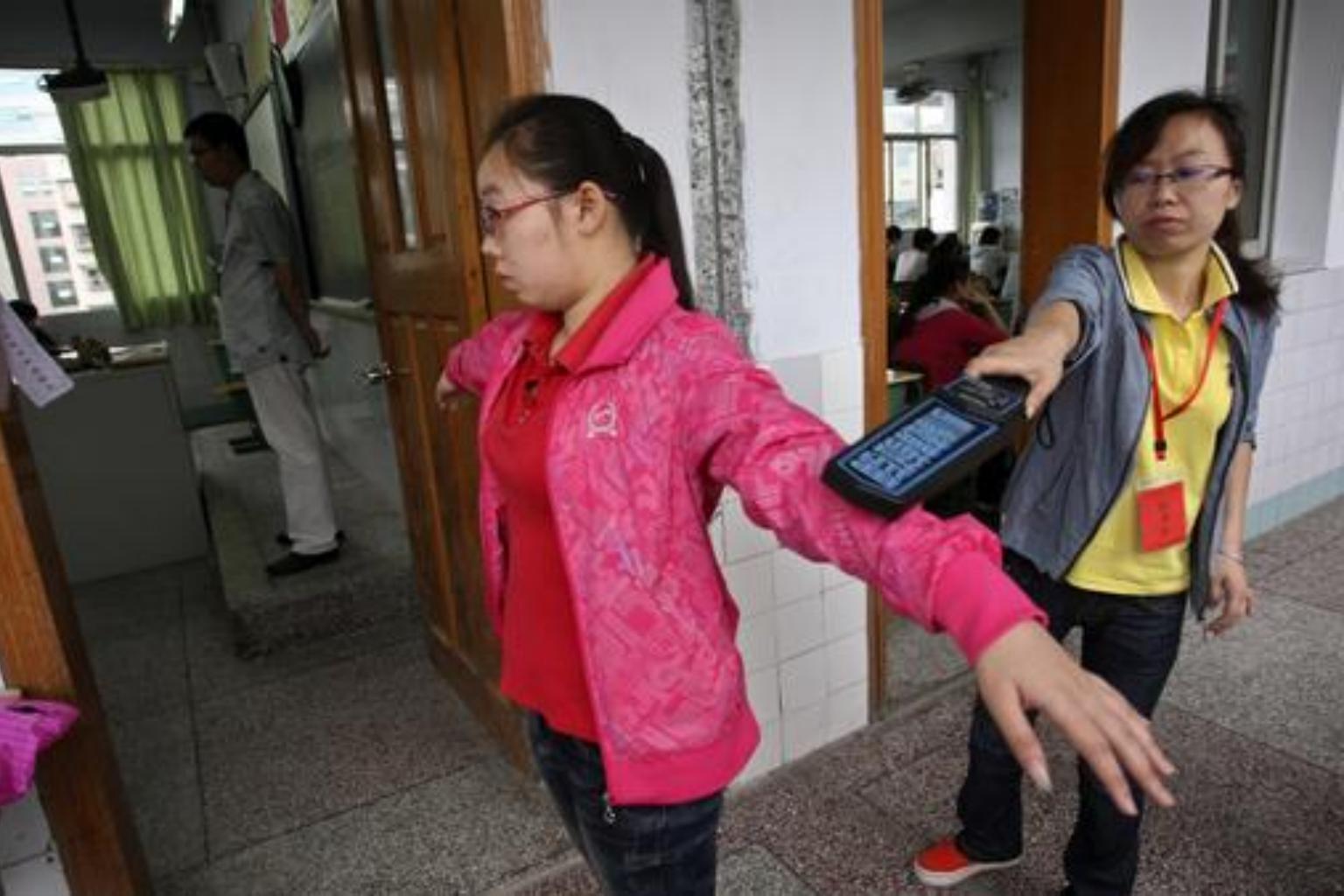 Exam centres this year have deployed metal detectors, facial and fingerprint recognition technology, cellphone-signal blockers, wireless detectors and even drones in their fight to root out cheating, media reported.