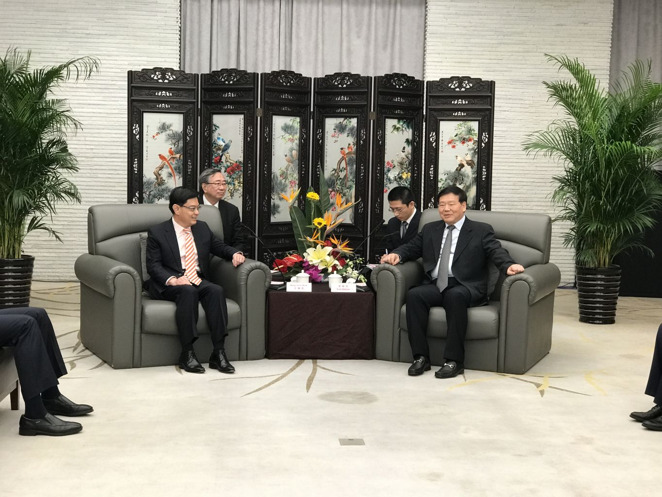 Minister for Finance Heng Swee Keat met Jiangsu party secretary Lou Qinjian in Suzhou on Wednesday (Nov 22) on the first day of his five-day visit to China.