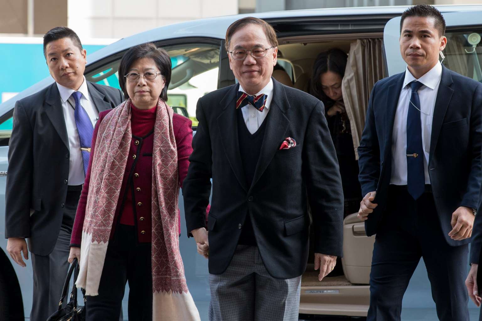 Former Hong Kong chief executive Donald Tsang and his wife Selina arrive the High Court in Hong Kong on Feb 16, 2017.