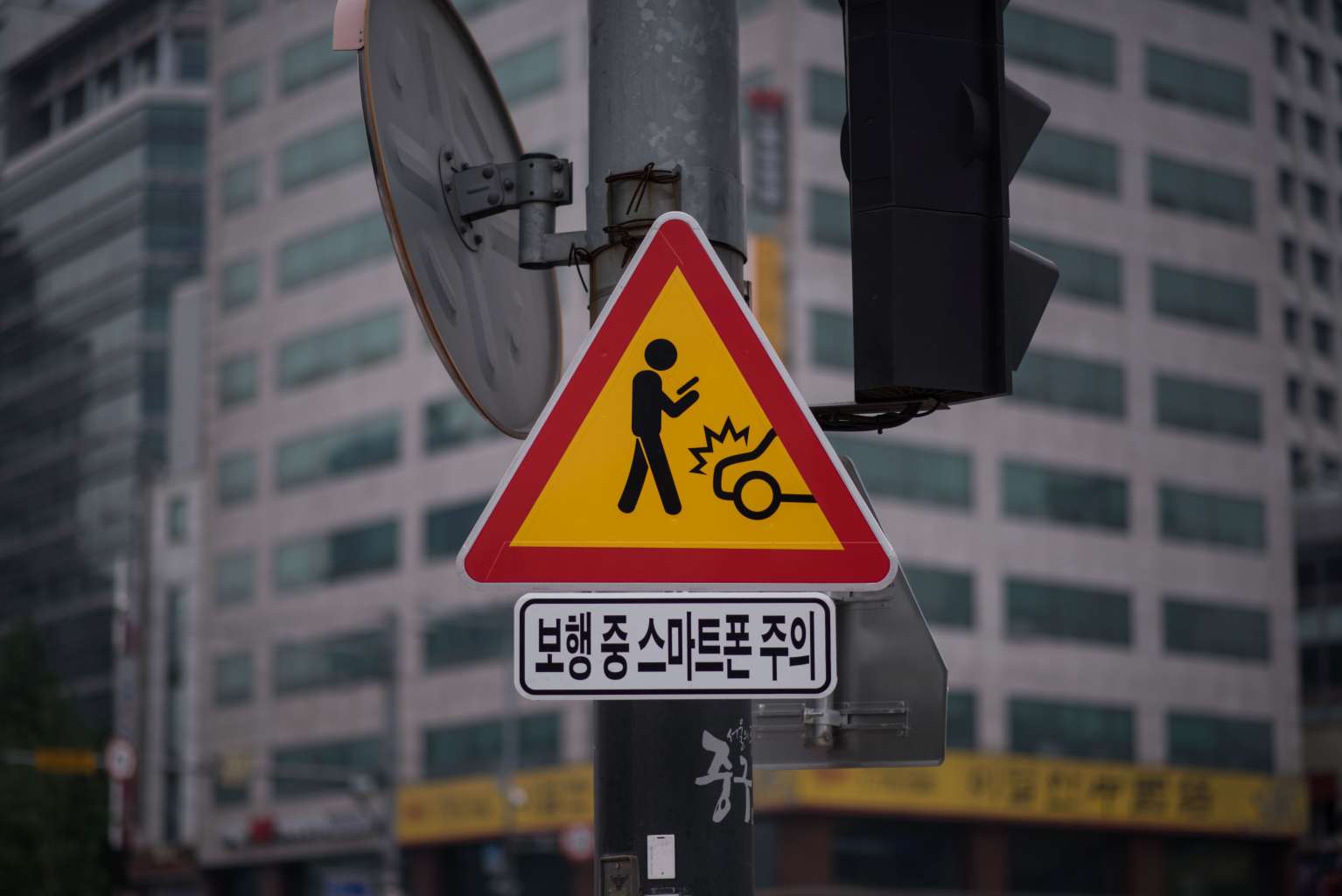In a bid to reduce the number of people either stepping carelessly into oncoming traffic or slamming into each other on the sidewalk, officials in Seoul - one of the world's most wired cities - have begun installing the first batch of 300 warning signs this week in five locations across the capital.