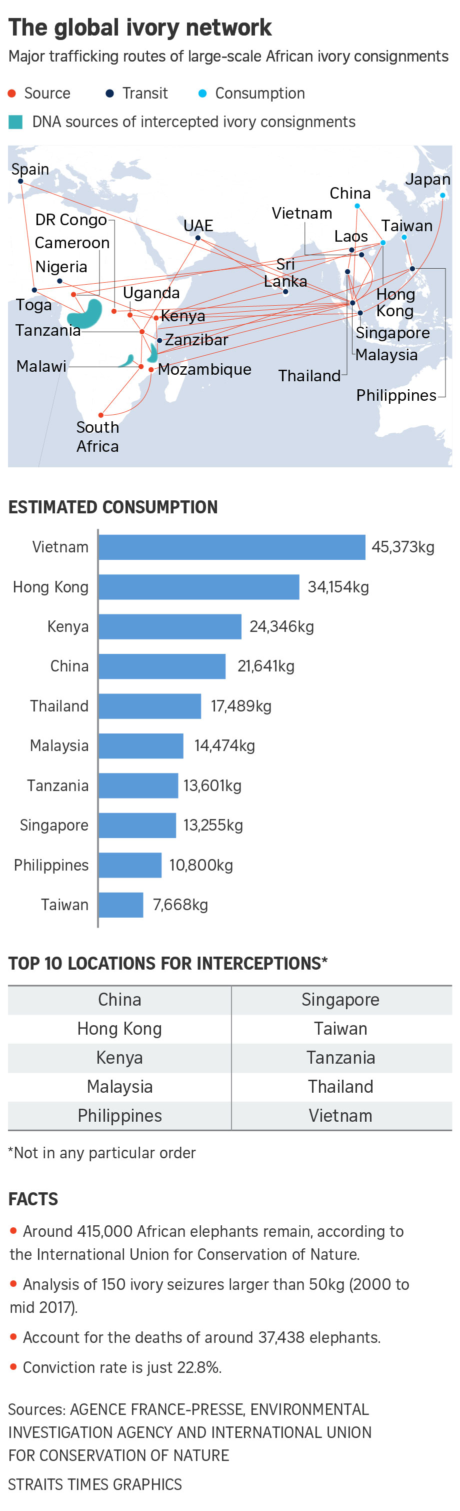HONG KONG (REUTERS) - Lawmakers in Chinese-ruled Hong Kong voted on Wednesday (Jan 31) to ban ivory sales in the world's largest ivory retail market, a move wildlife activists hailed as vital towards halting the slaughter of elephants.