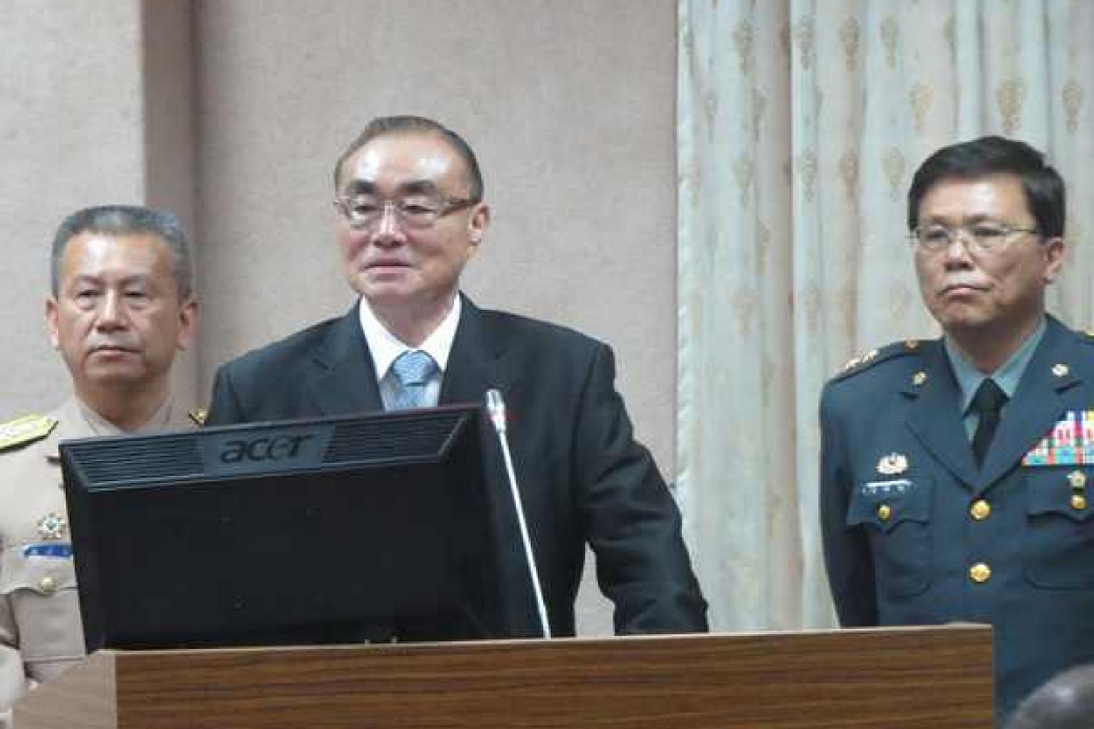 Defense Minister Feng Shih-kuan (centre) attends the first interpellation session of his tenure at the Legislative Yuan in Taipei on May 23.