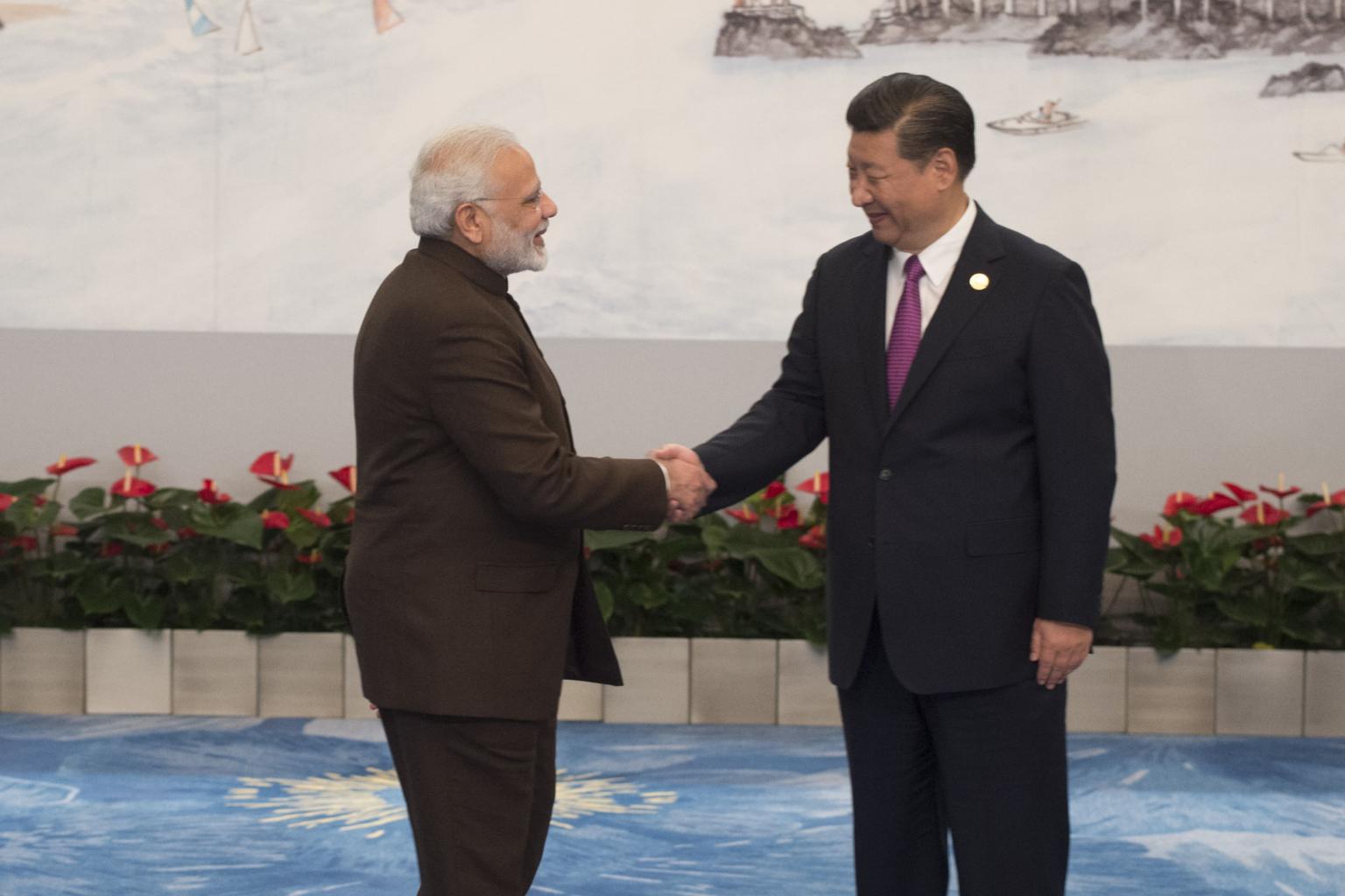Chinese President Xi Jinping (right) welcomes Indian Prime Minister Narendra Modi for a banquet dinner during the Brics Summit in Xiamen, Fujian province, on Sept 4, 2017.