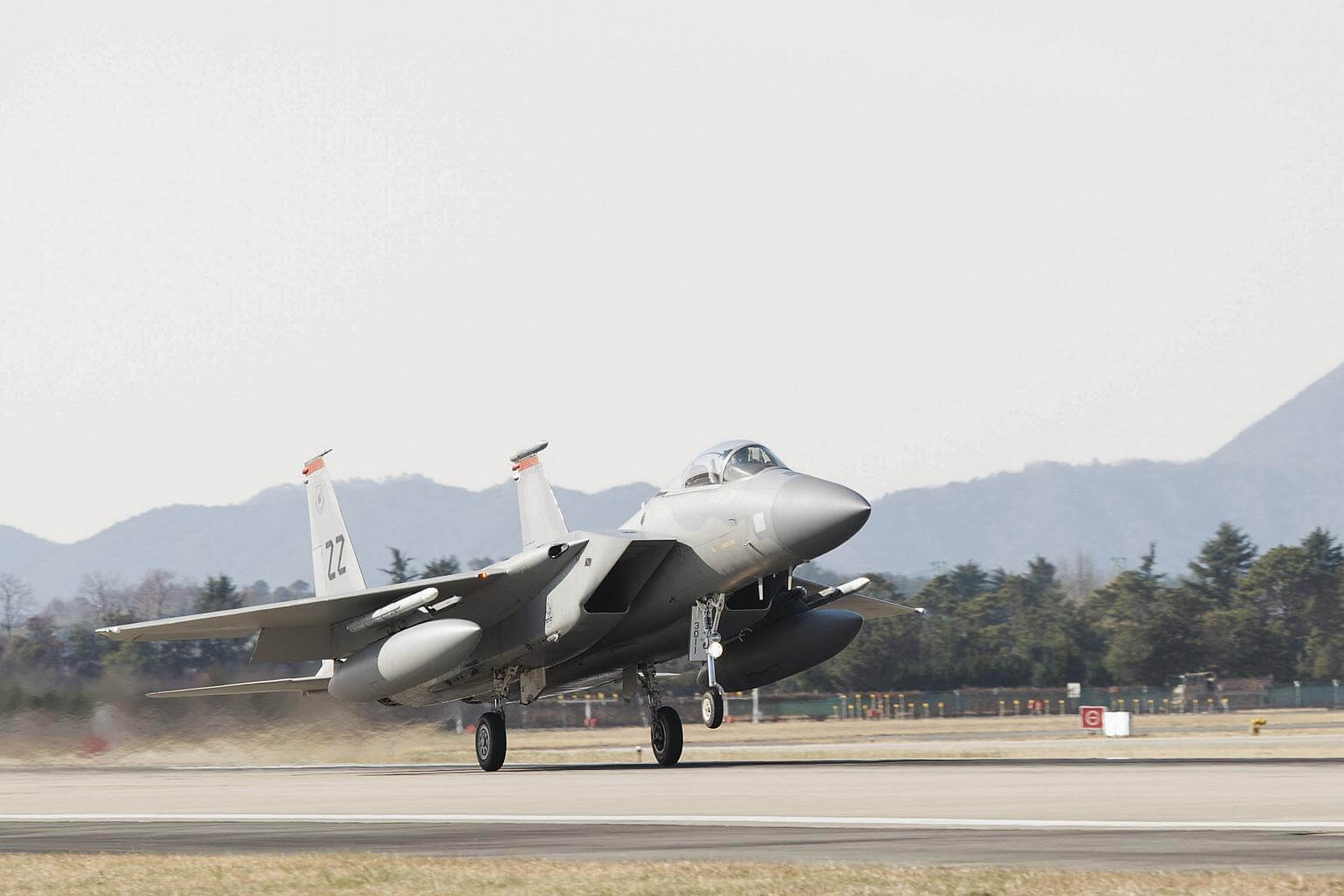 An F-15 from Kadena Air Base, Japan, arriving to participate in Vigilant ACE at Gwangju Air Base, South Korea, on Dec 1.