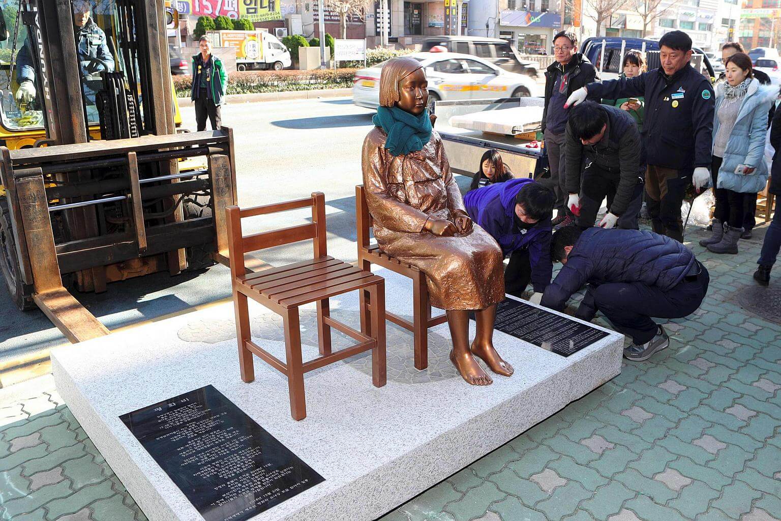 But after the Japanese defence minister paid homage at Yasukuni Shrine last month - a spot where senior convicted war criminals are honoured - Seoul allowed the activists to put the statue back up.