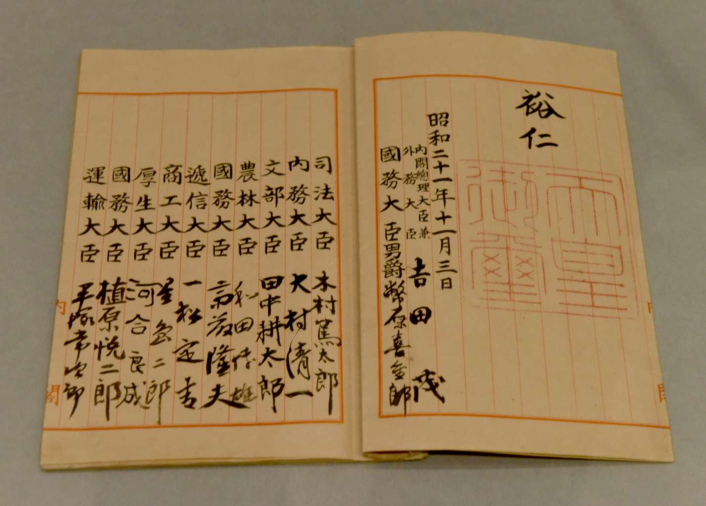 The original Japanese Constitution at the National Archives of Japan in Tokyo.