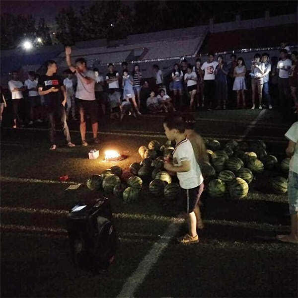 The student from Henan University of Engineering in Zhengzhou, capital of central Henan province, placed the watermelons on a sports field on campus, along with a cake on Monday (June 19), sohu.com said.