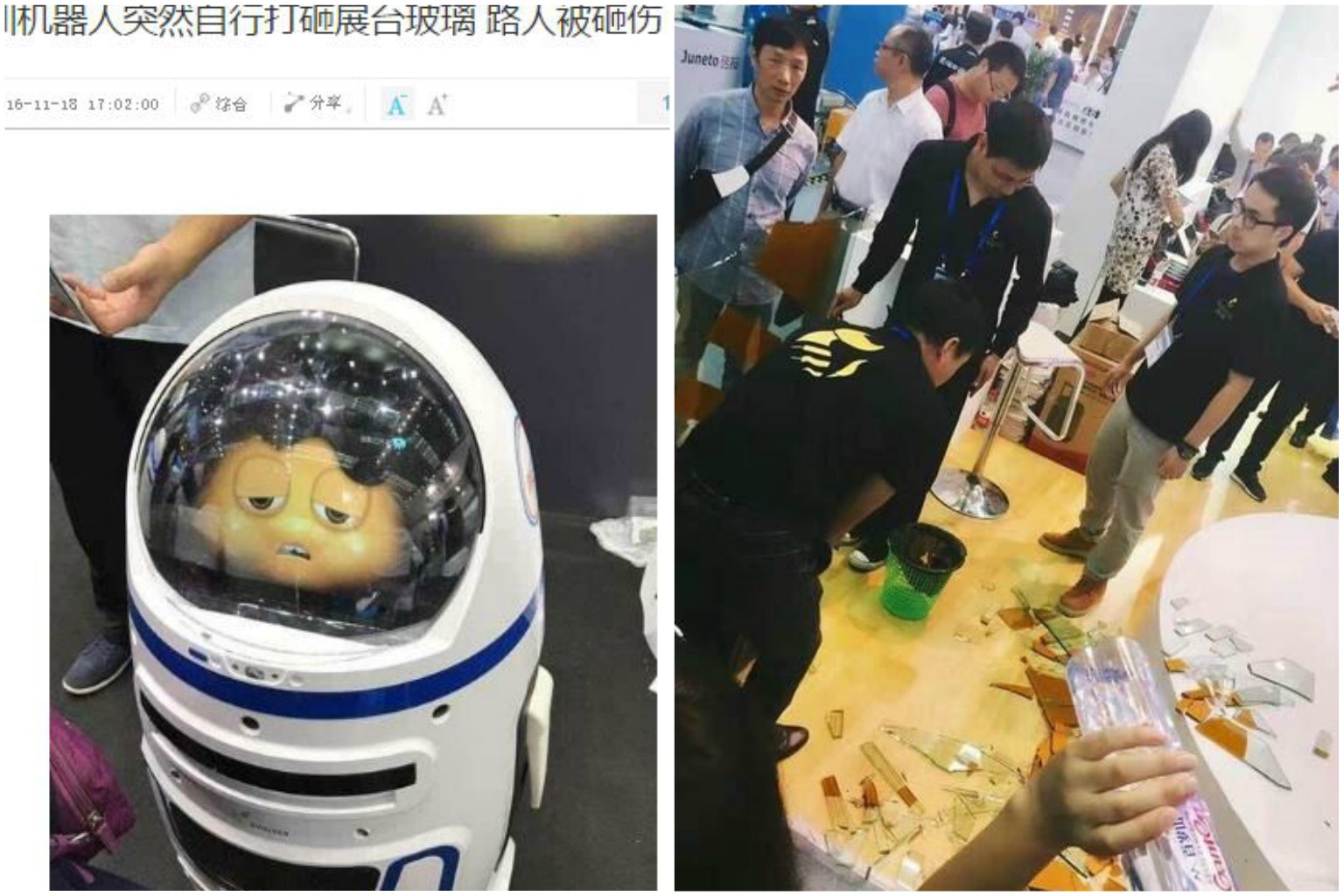 Man wounded by broken glass after robot smashes window at Shenzhen technology fair.