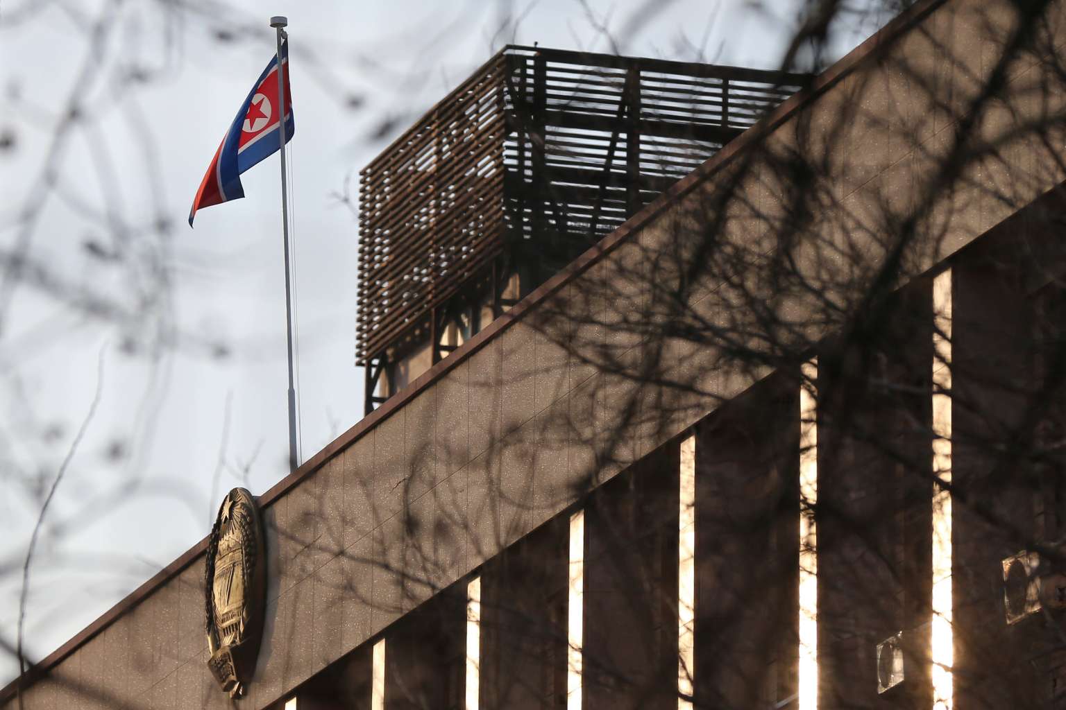 The North Korean national flag is shown at the North Korea embassy in Beijing, China, on Feb 28, 2017.