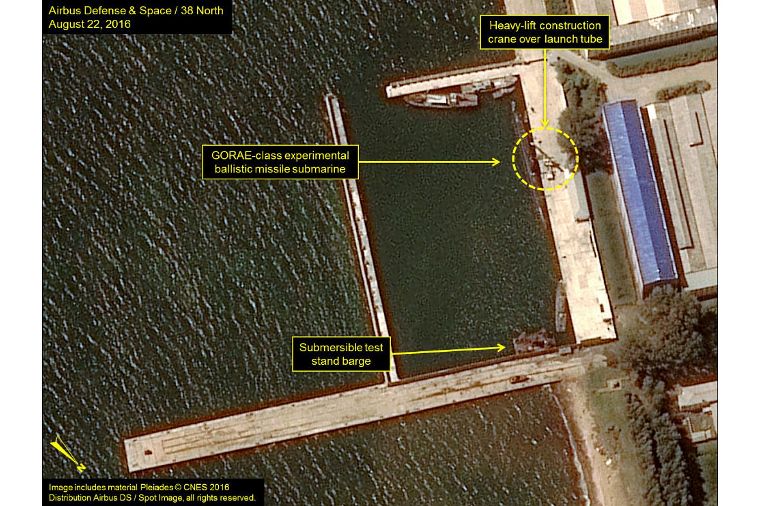 The Sinpo South Shipyard in North Korea, home port of the GORAE-class submarine, is seen in a commercial satellite image taken on Aug 22, 2016.
