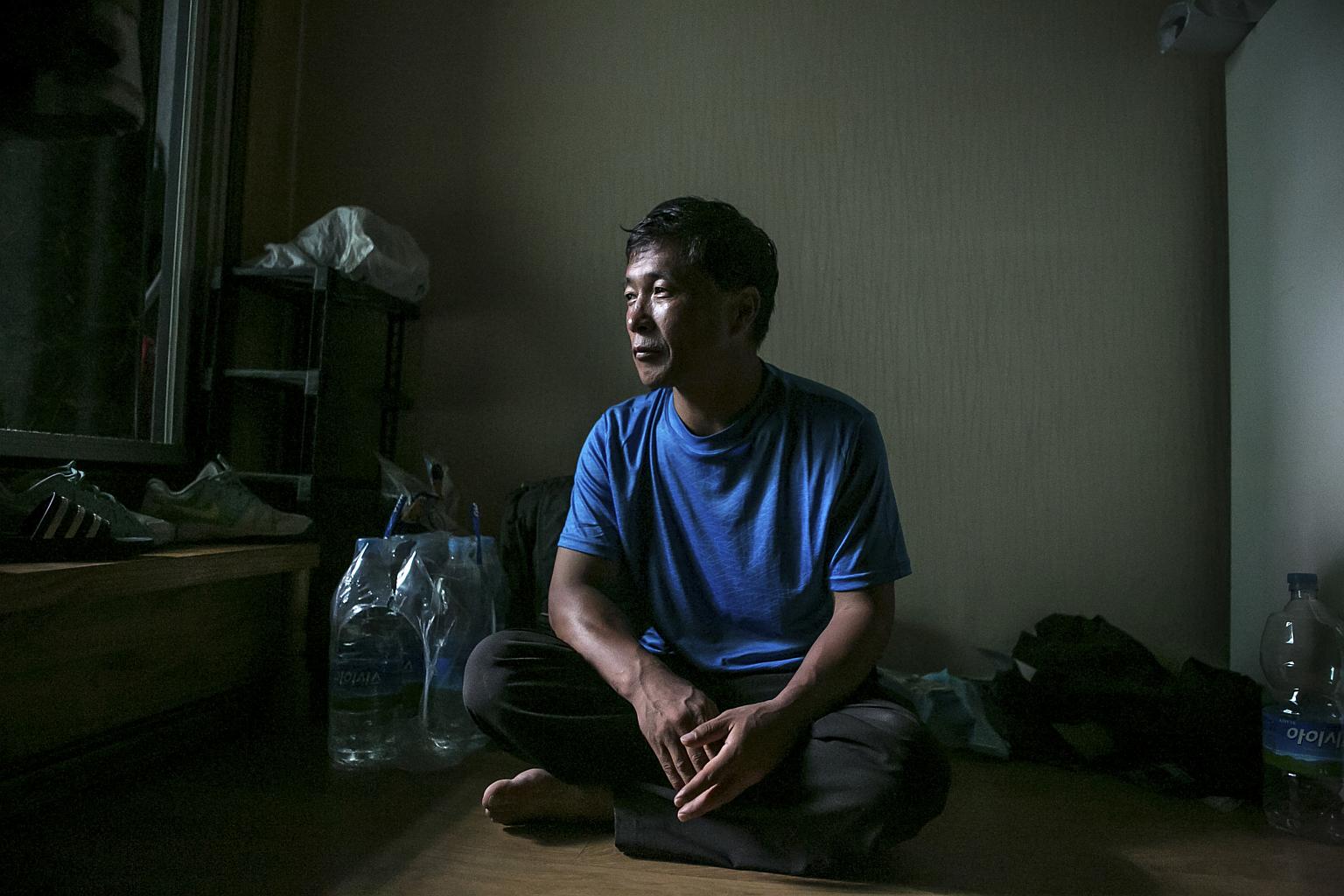 Kwon Chol Nam, a North Korean defector, in his half-basement studio home in Seoul on Aug 2, 2017.