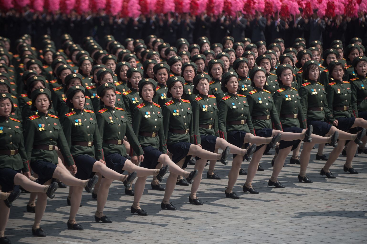 Korean People's Army (KPA) soldiers marching in Kim Il Sung Square during a parade on April 15, 2017. North Korea announced it would commemorate the 70th anniversary of the founding of its military on Feb 8, changing the date from April 25.