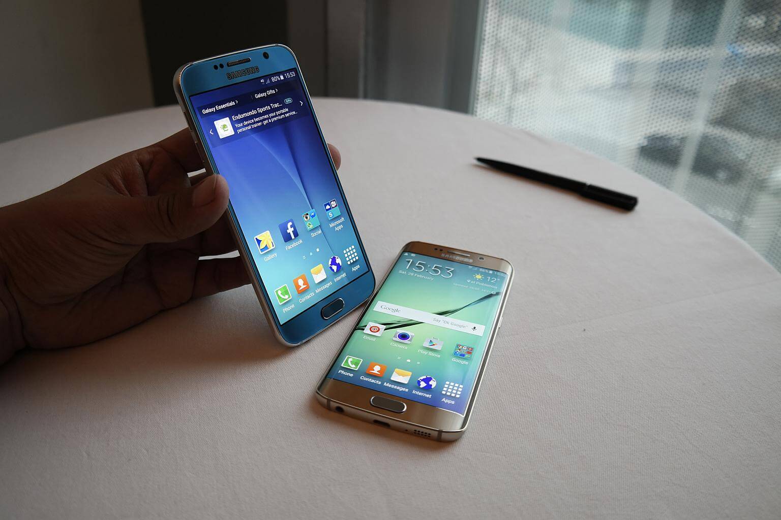 The blue topaz Samsung Galaxy S6 (left) and gold platinum Samsung Galaxy S6 edge.