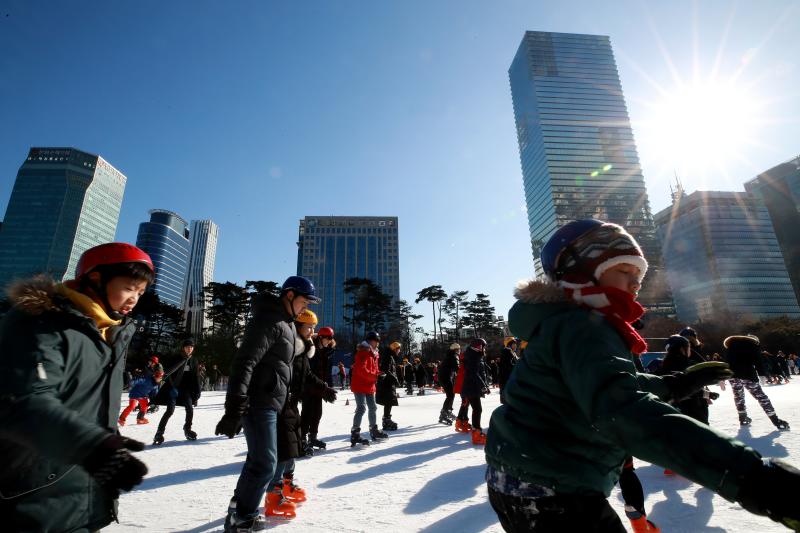 Seoul citizens enjoy skating at an ice park in Yeouido, Seoul, South Korea, on Dec 25, 2017.