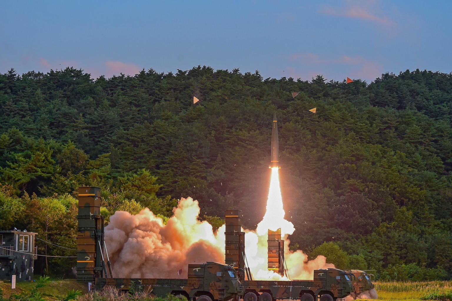 A handout photo made available by the South Korea Defense Ministry shows a Hyunmoo-2 missile being launched at an undisclosed location on the east coast of South Korea, on Sept 4, 2017.