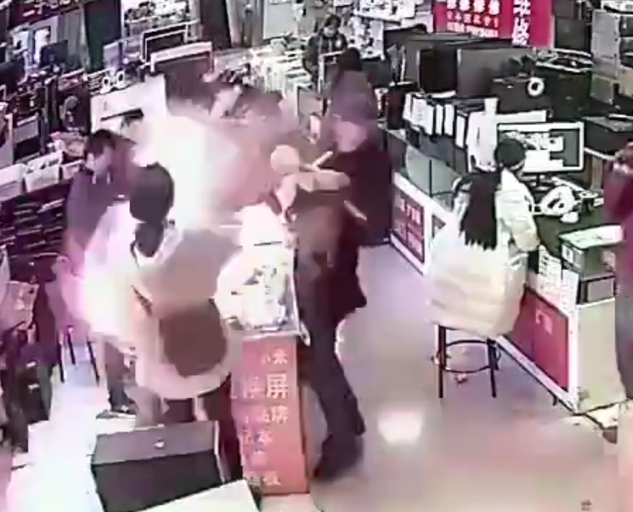 The episode was captured by the store's CCTV security cameras, and the video clip has since gone viral on China's video sharing platform Miaopai, with more than 4 million views.