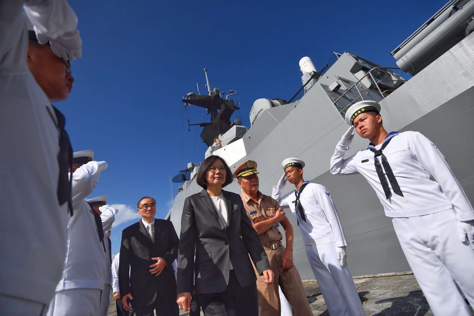 President Tsai Ing-wen rallied troops on the deck of the frigate, saying Taiwanese were determined to "defend their country's rights", before the warship headed for Taiwan-controlled Taiping island in the Spratly island chain from the southern city of Kaohsiung.