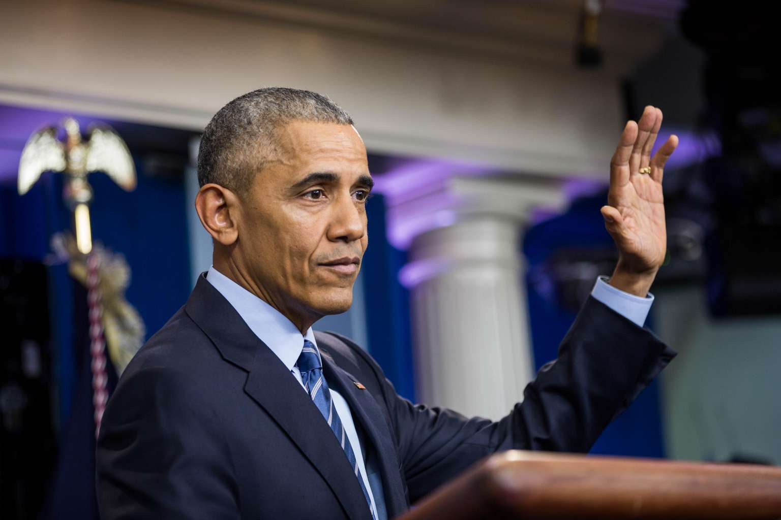 US President Barack Obama holds a year-end press conference in the Brady Press Briefing Room of the White House in Washington, DC.