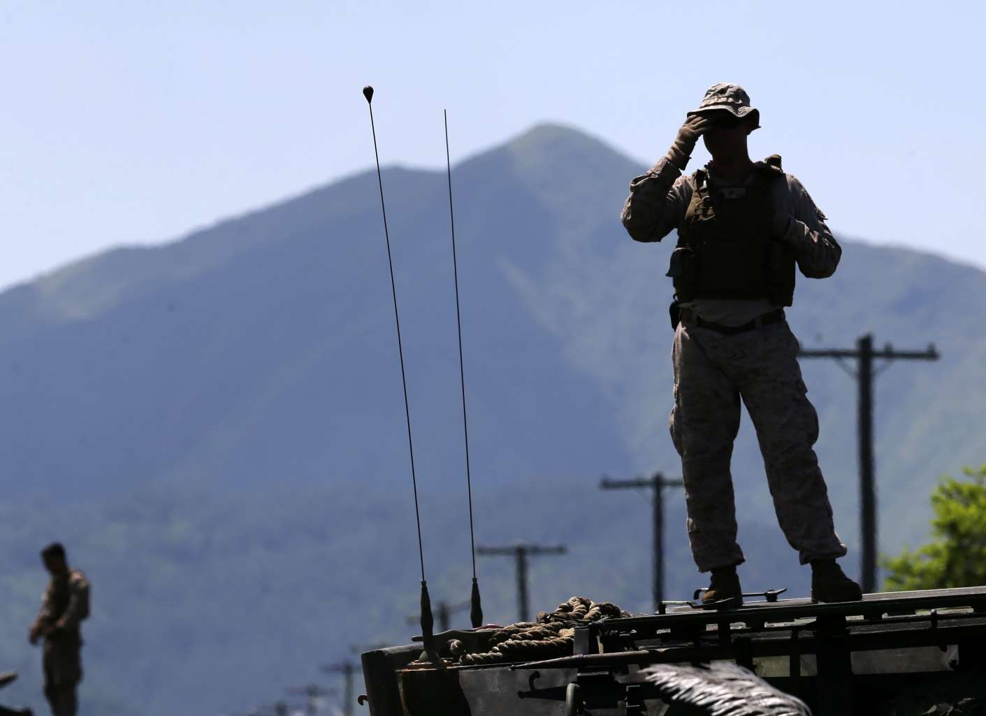 US soldiers stand guard on top of Amphibious Assault vehicles (AAV) during the Philippine-US joint naval training exercise on Oct 9, 2015.