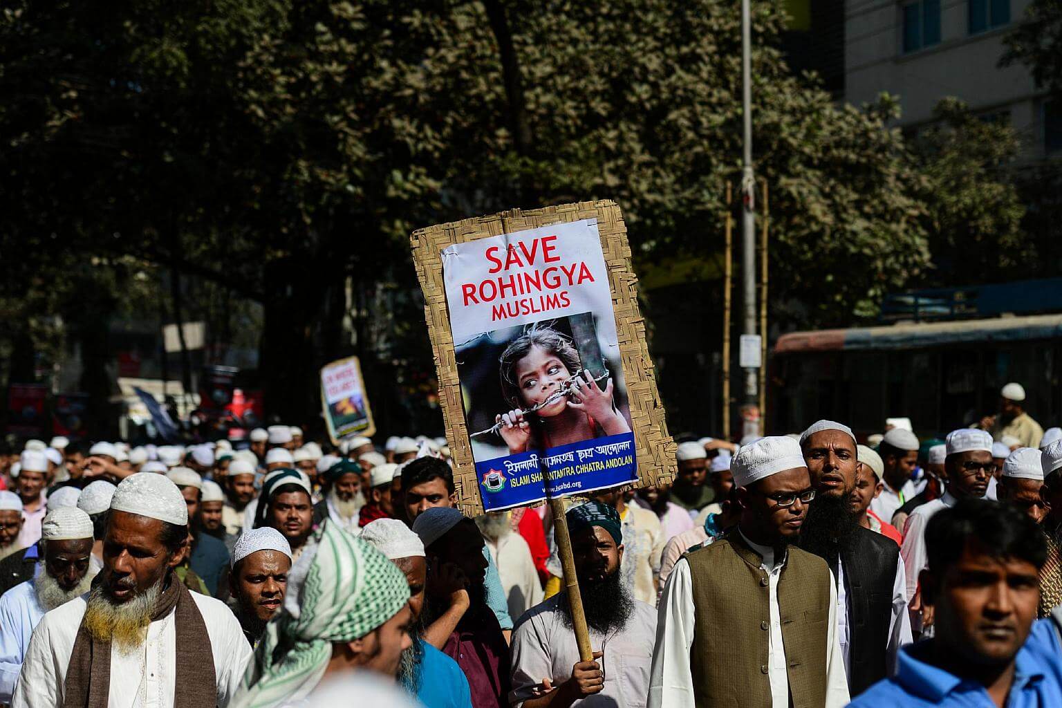 Bangladeshi activists from Islamic organisations march towards the Myanmar embassy in Dhaka on Dec 6, 2016, to protest against the persecution of Rohingya Muslims in Myanmar.