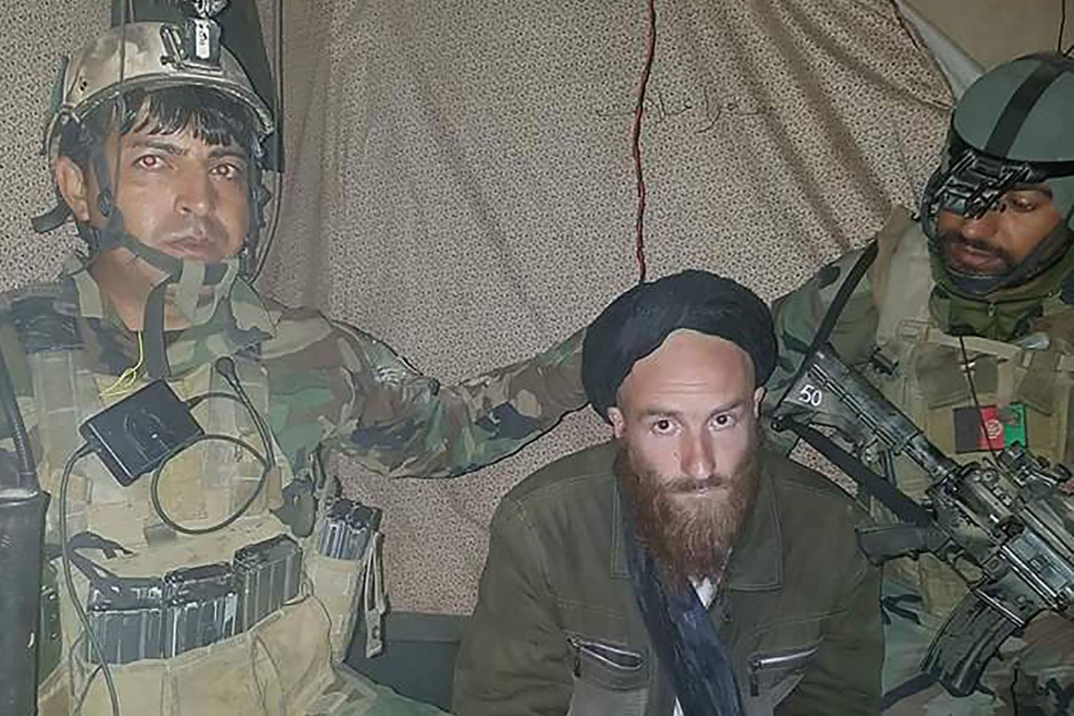 Photographs taken by the Afghan military show a man who looks to be in his 40s with a long reddish-brown beard speckled with grey, and wearing a black turban.