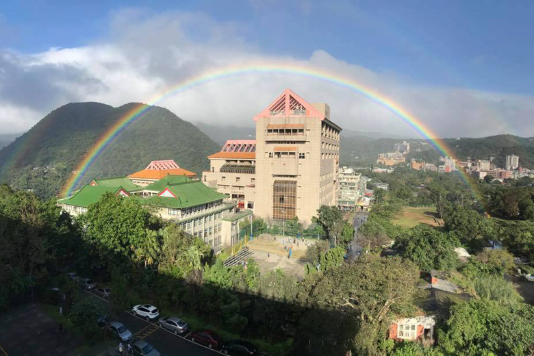 The rainbow was recorded on Nov 30, 2017, by professors at the Chinese Culture University in Taiwan's Shilin District.