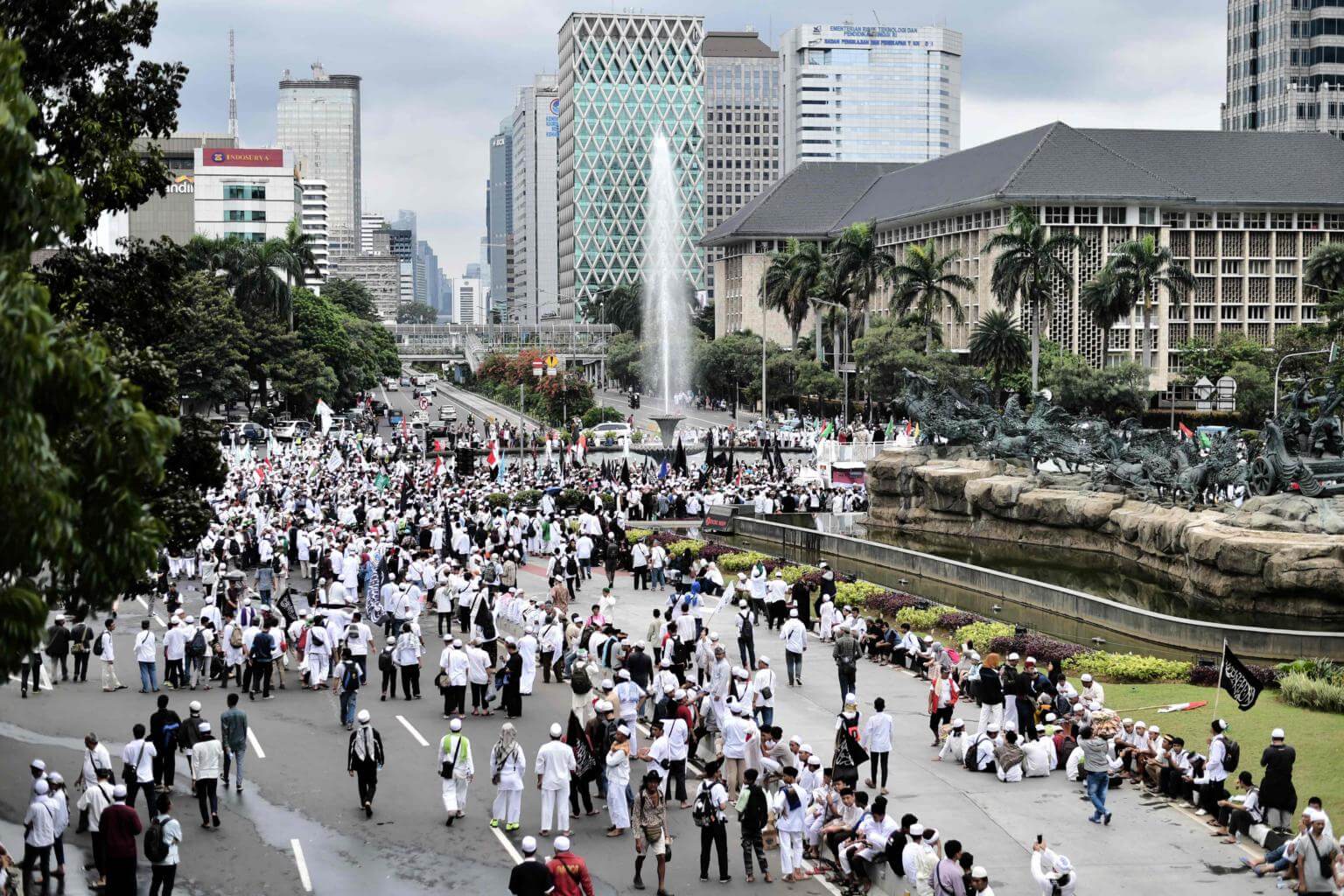 Indonesian Muslims protest in Jakarta to demand that Governor Basuki "Ahok" Tjahaja Purnama be jailed for allegedly blaspheming Islam.
