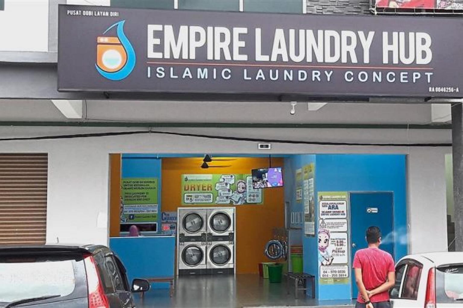 The main signboard stated that the shop practises the "Islamic laundry concept".