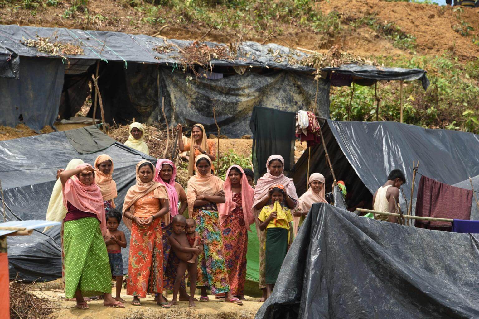 A group of Rohingya refugees at the newly-expanded camp housing refugees from Myanmar known as Kutupalong Extension in Bangladesh's Ukhia district.