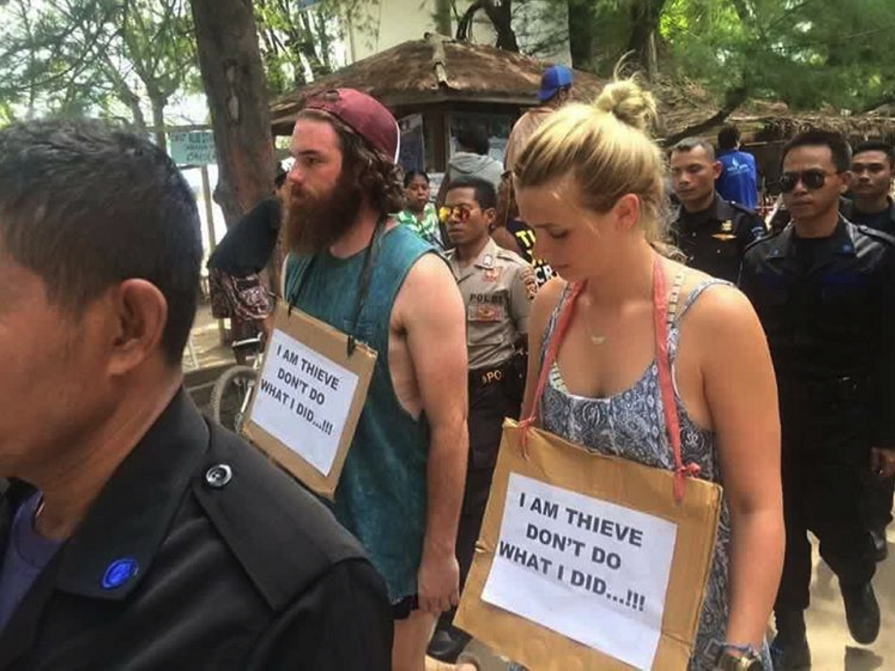 The two were the first foreigners this year to undergo a "walk of shame" on the island. A few Indonesians have been forced to take part this year in similar parades for theft.