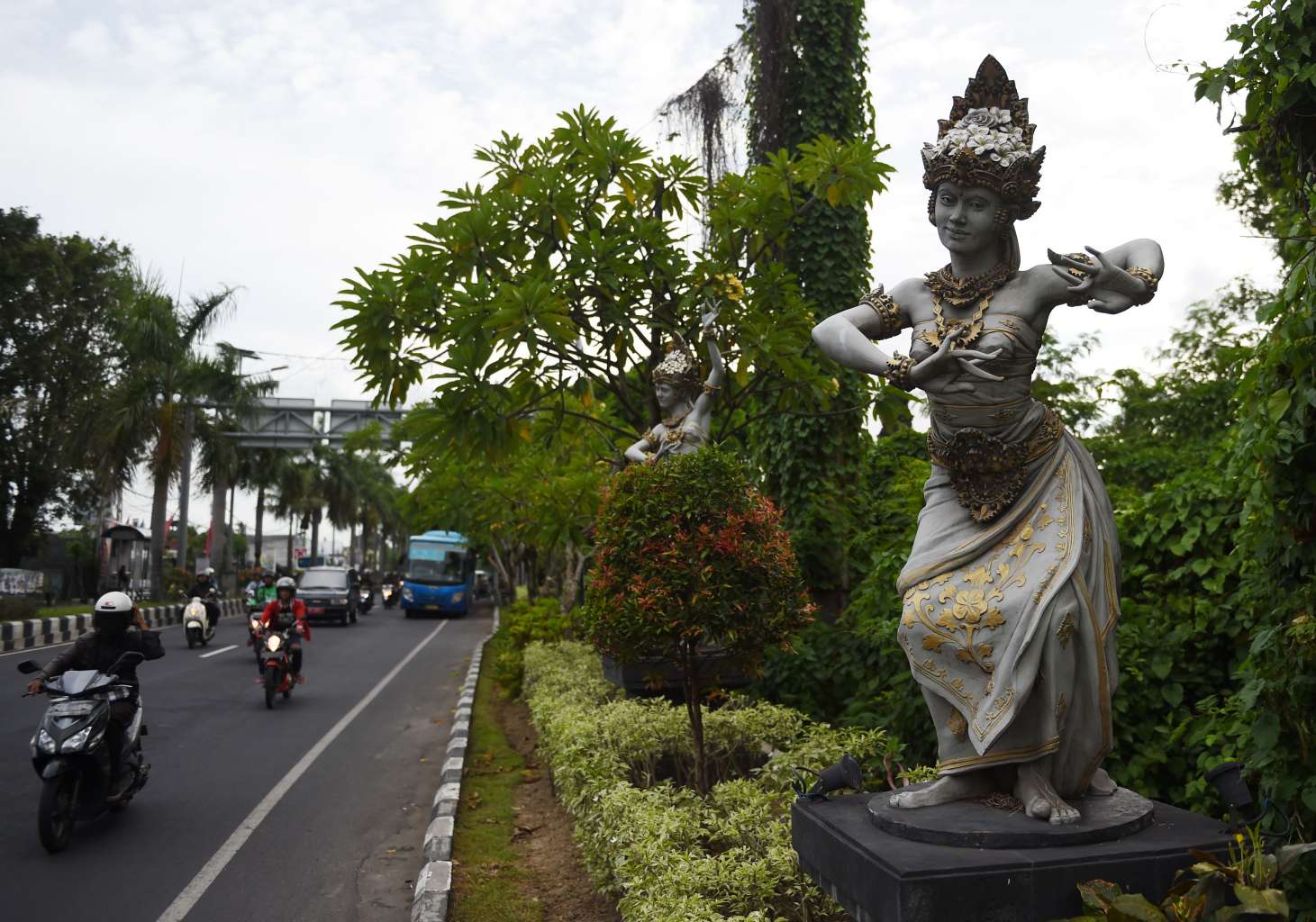 A Balinese statue is seen along a main road in Denpasar, Bali, on March 8, 2017.